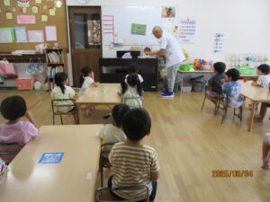 9月8日(月) ~おいしい扉をトントントン~ すずめ組  みんなの好きな食べ物は、どんな形をしているかな?