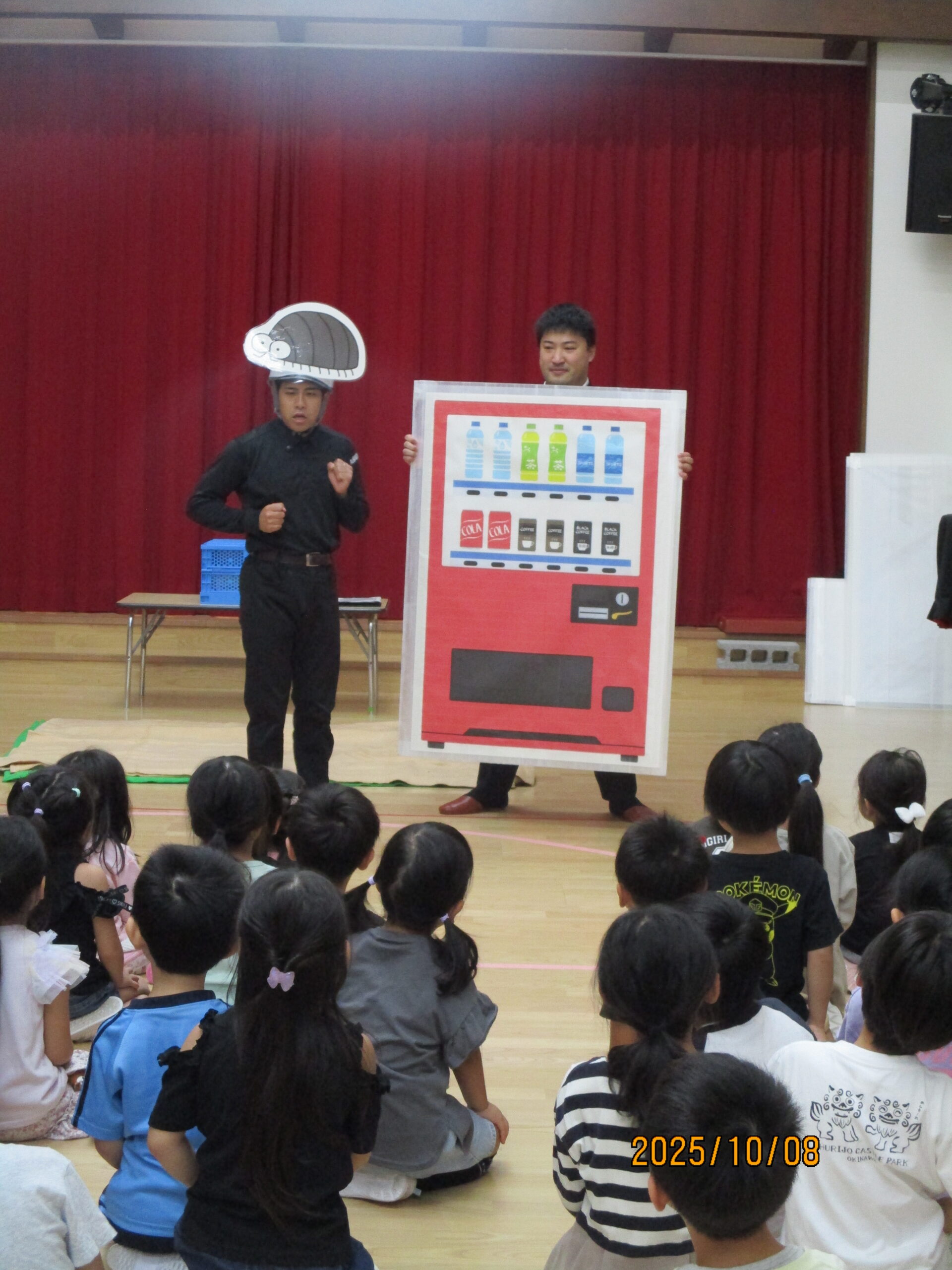 地震の時は、自動販売機や塀が倒れてくるので離れようね。家の中でも倒れてきそうなものから離れようね。ダンゴムシのポーズをして、自分の身を守りましょう!