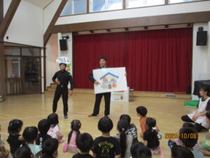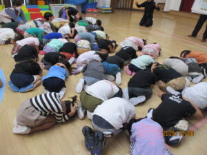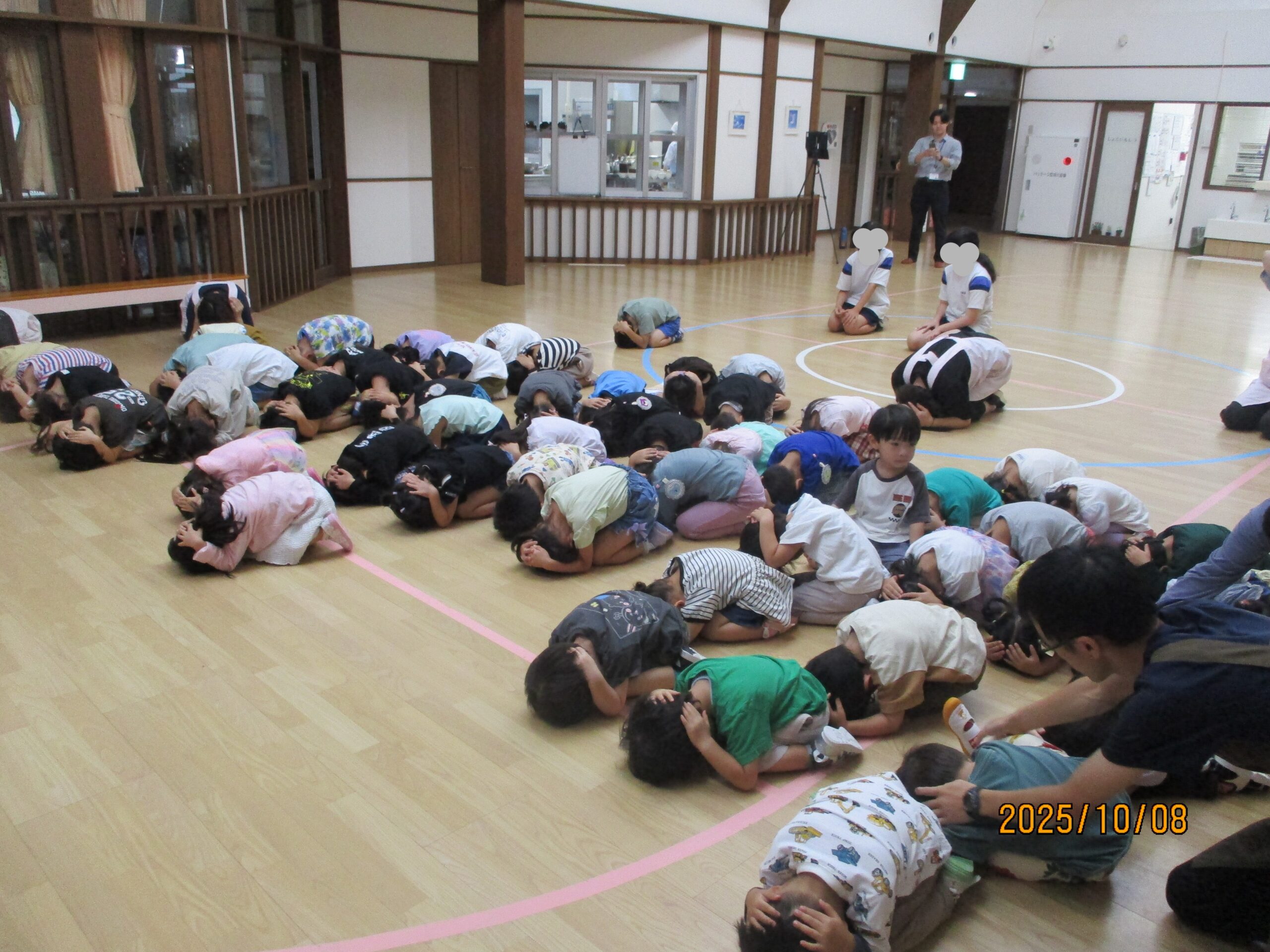 保育園の避難訓練でもたくさん学んでいますが、今日は新しいこともたくさん教えてもらいました!真剣に聞いていた子ども達でした。お家でも子ども達から防災のお話を聞いてみてくださいね!