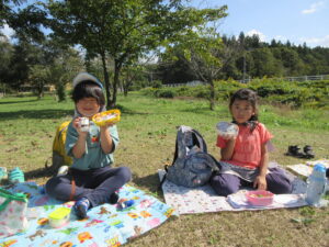 10月17日(金)年長組さんが、子ども大学で『夢の森公園』に出かけてきました。午前は森の教室で散策、午後はどうぶつマグネット作りを楽しみました。秋晴れの天気の中たっぷりと楽しんできました。