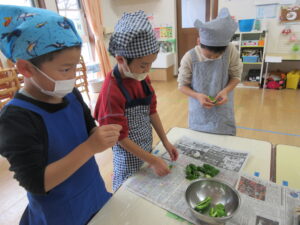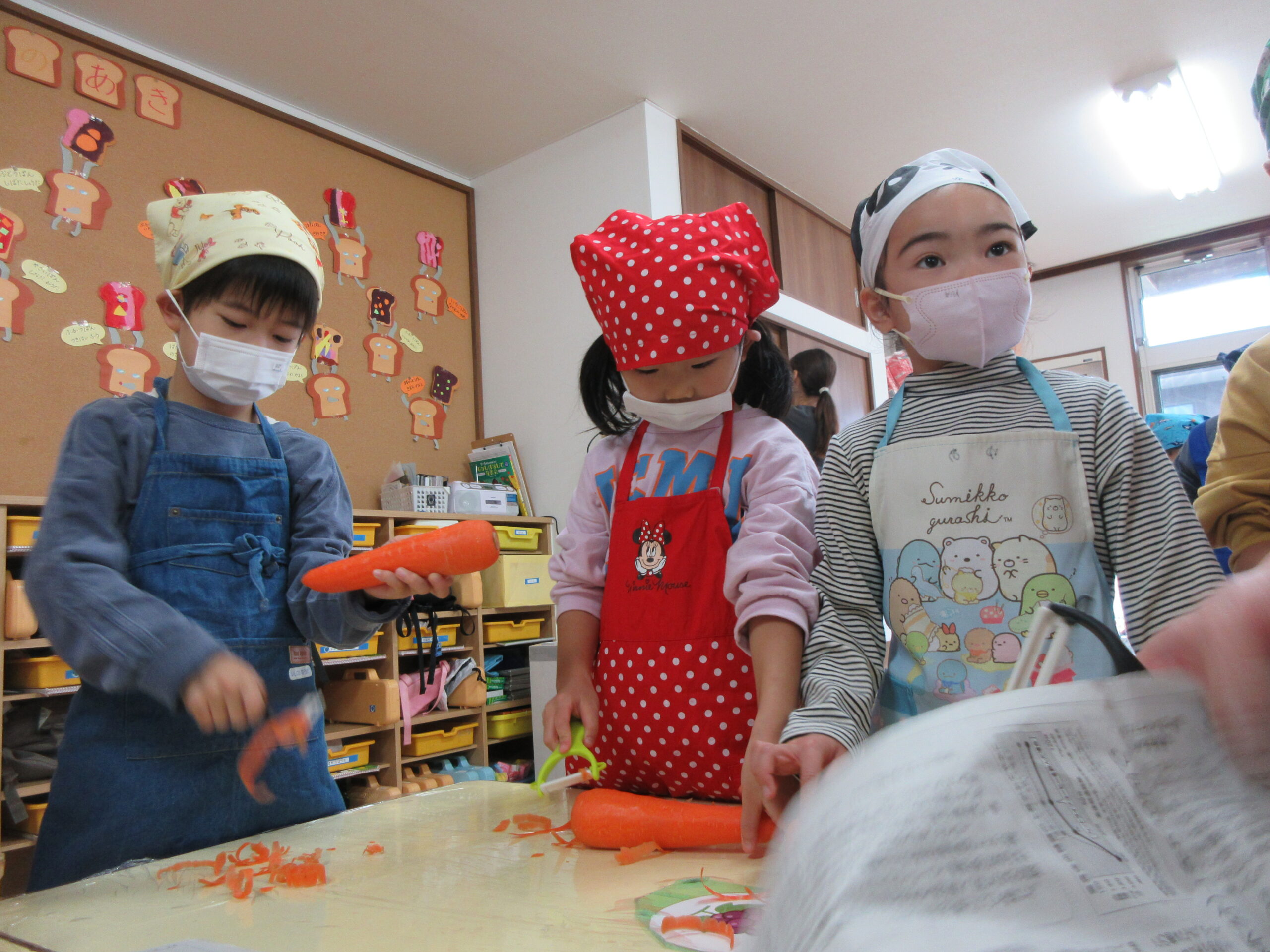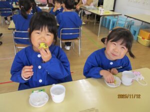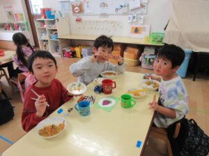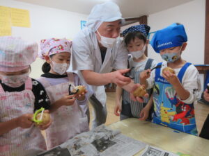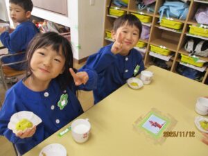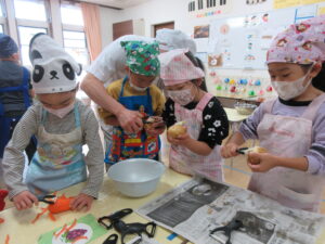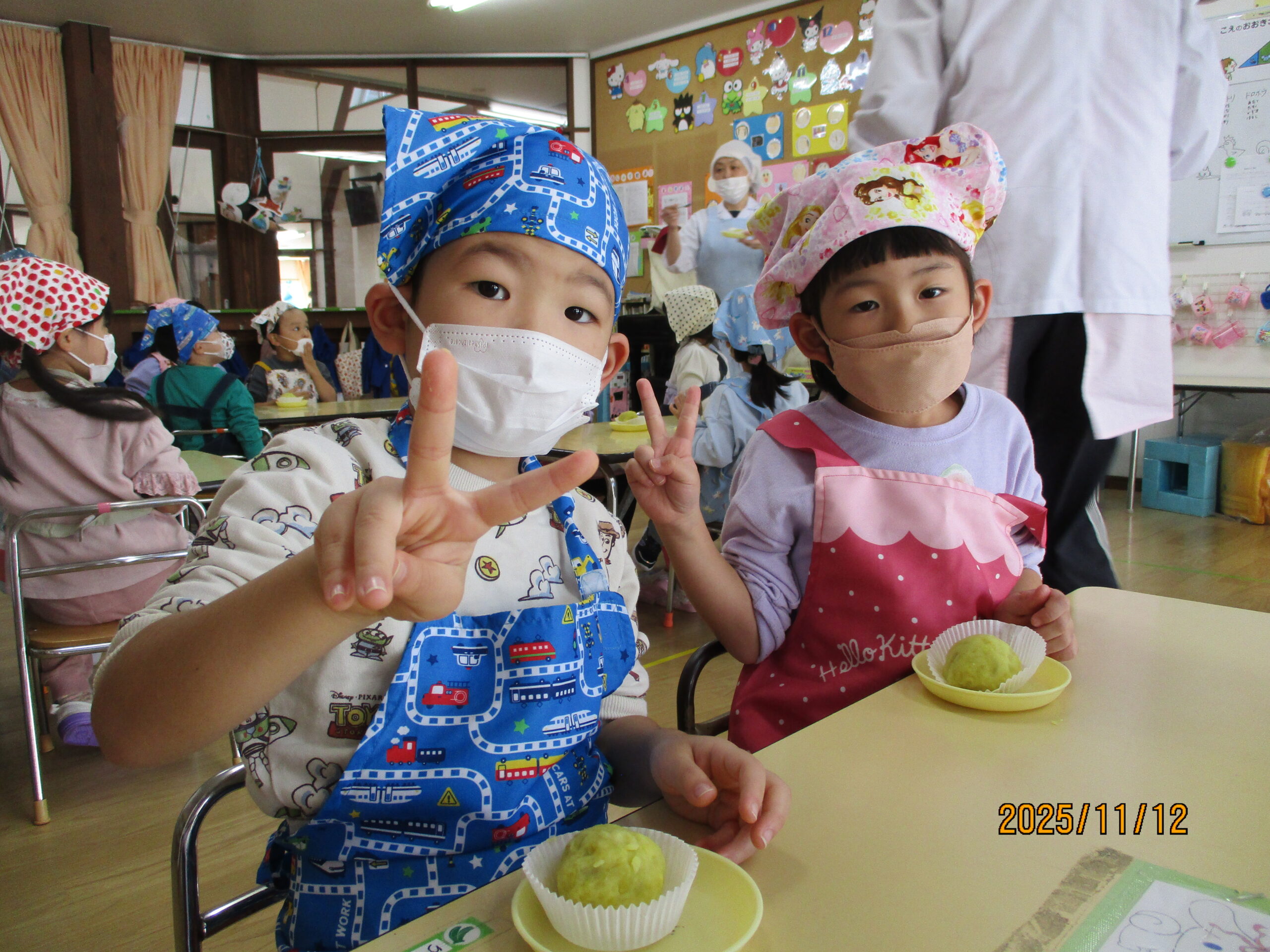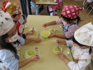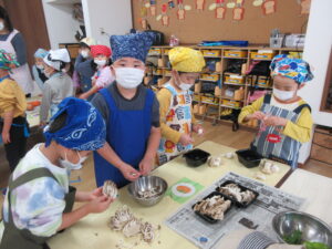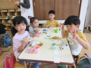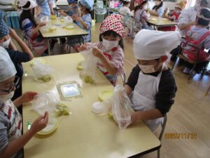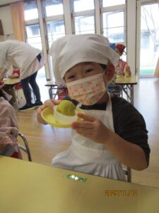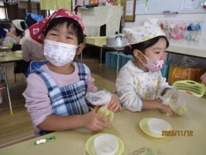 「できた、できたー!」「もう食べたくなってきたなー!」と出来あがった喜びでいっぱいの子ども達でした。