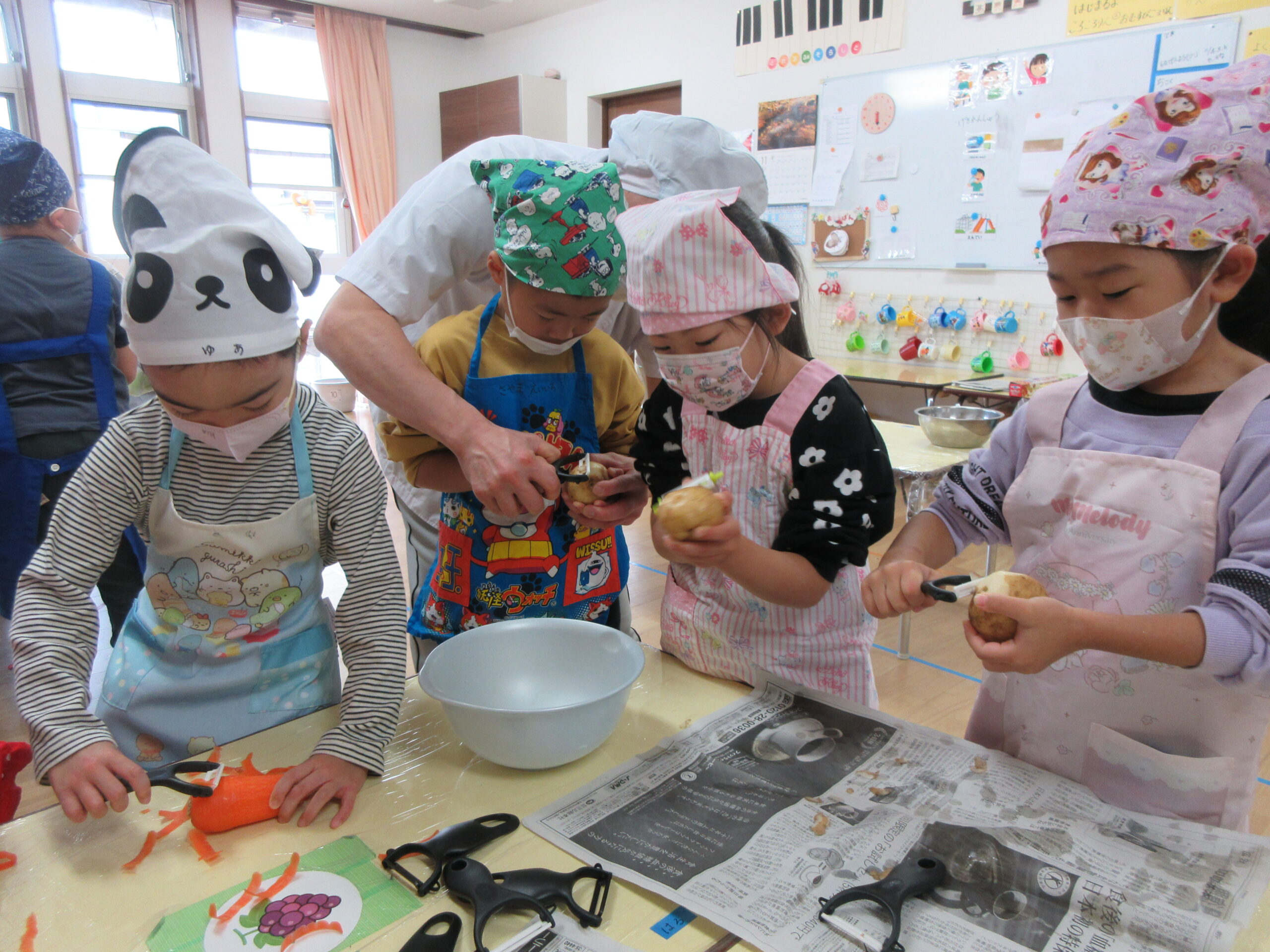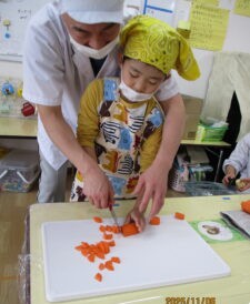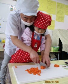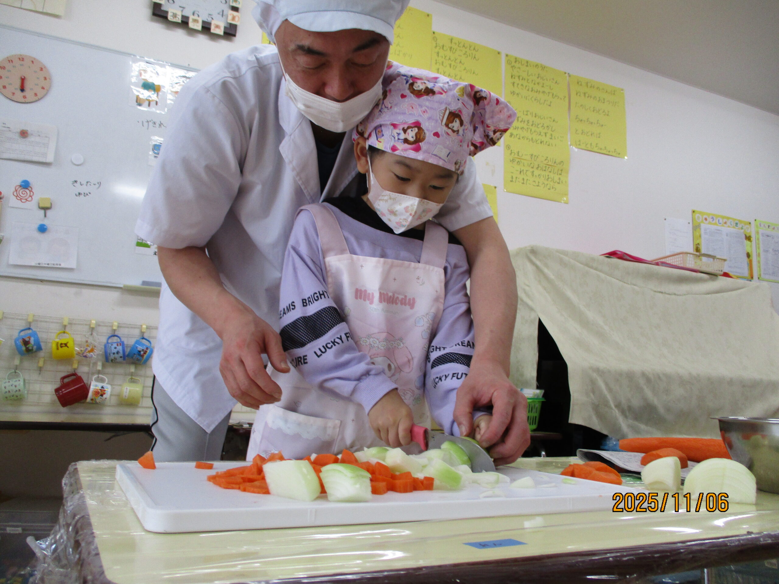 11月6日(木) ~カレー作り~ くじら組 年長組がカレーライスの具材切りに挑戦しました。
