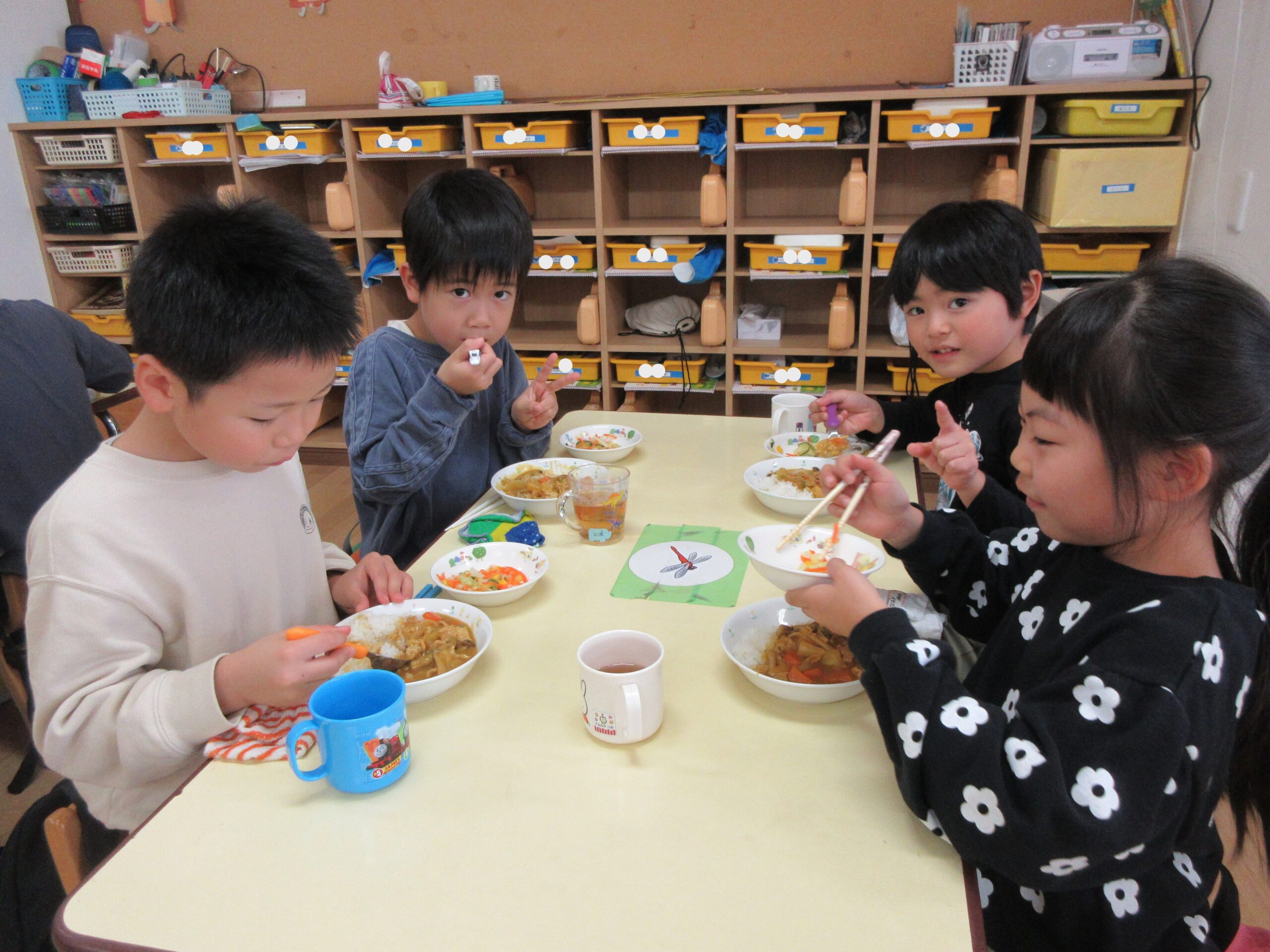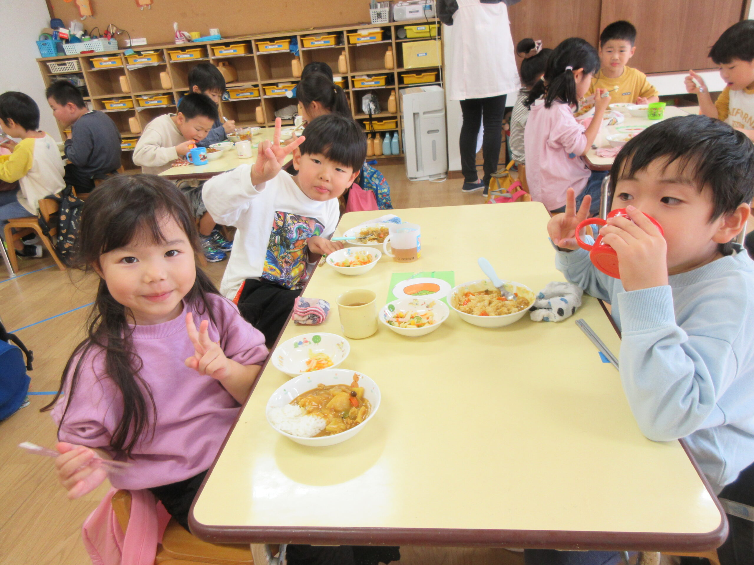 「今度、お家でカレーを作るお手伝いしよう!」「そうだね。ママのお手伝いして一緒に作ろう!」と嬉しい声が聞かれました🍛子どもと一緒にカレー作りできたら、楽しいですね!是非ぜひ、やってみてください😊