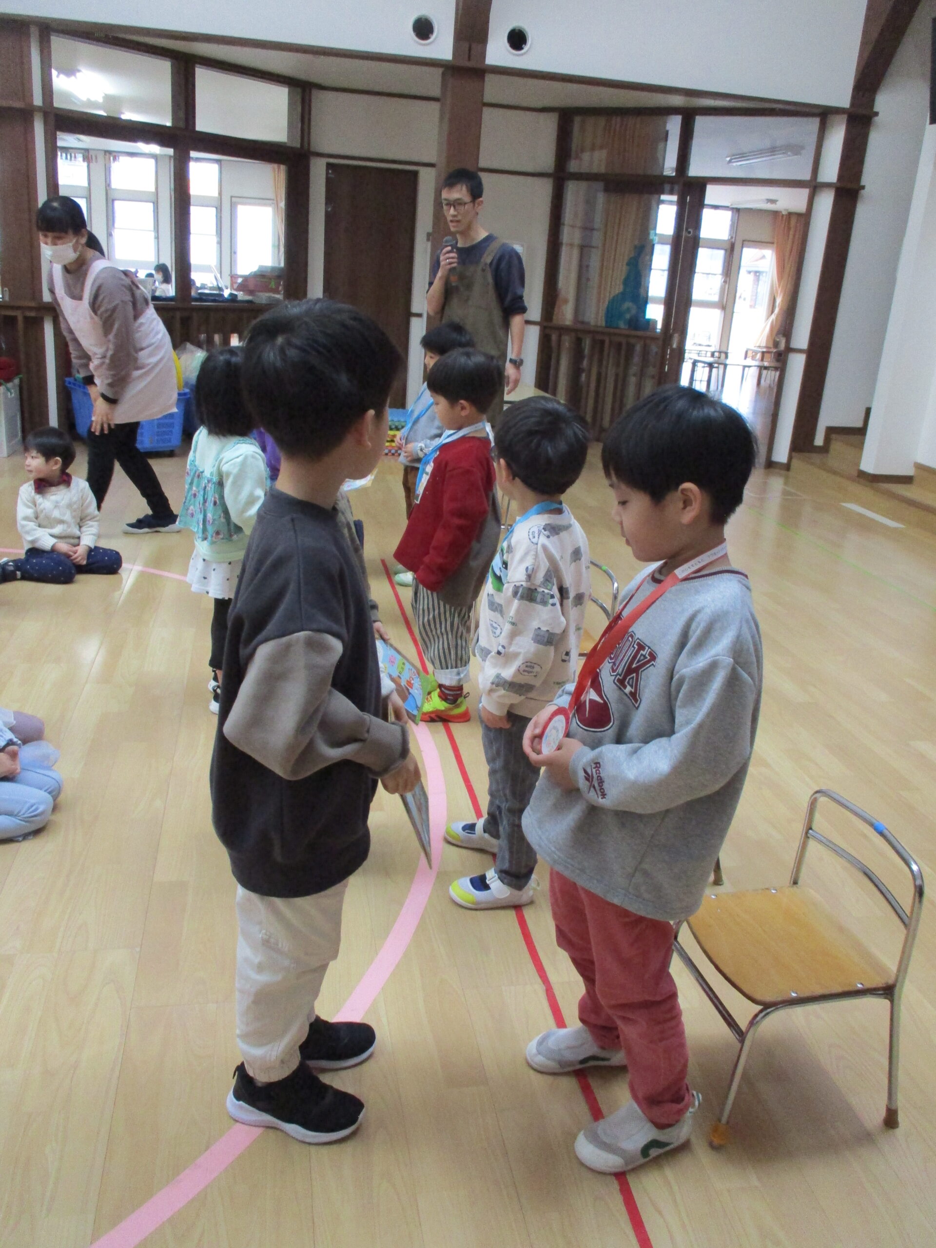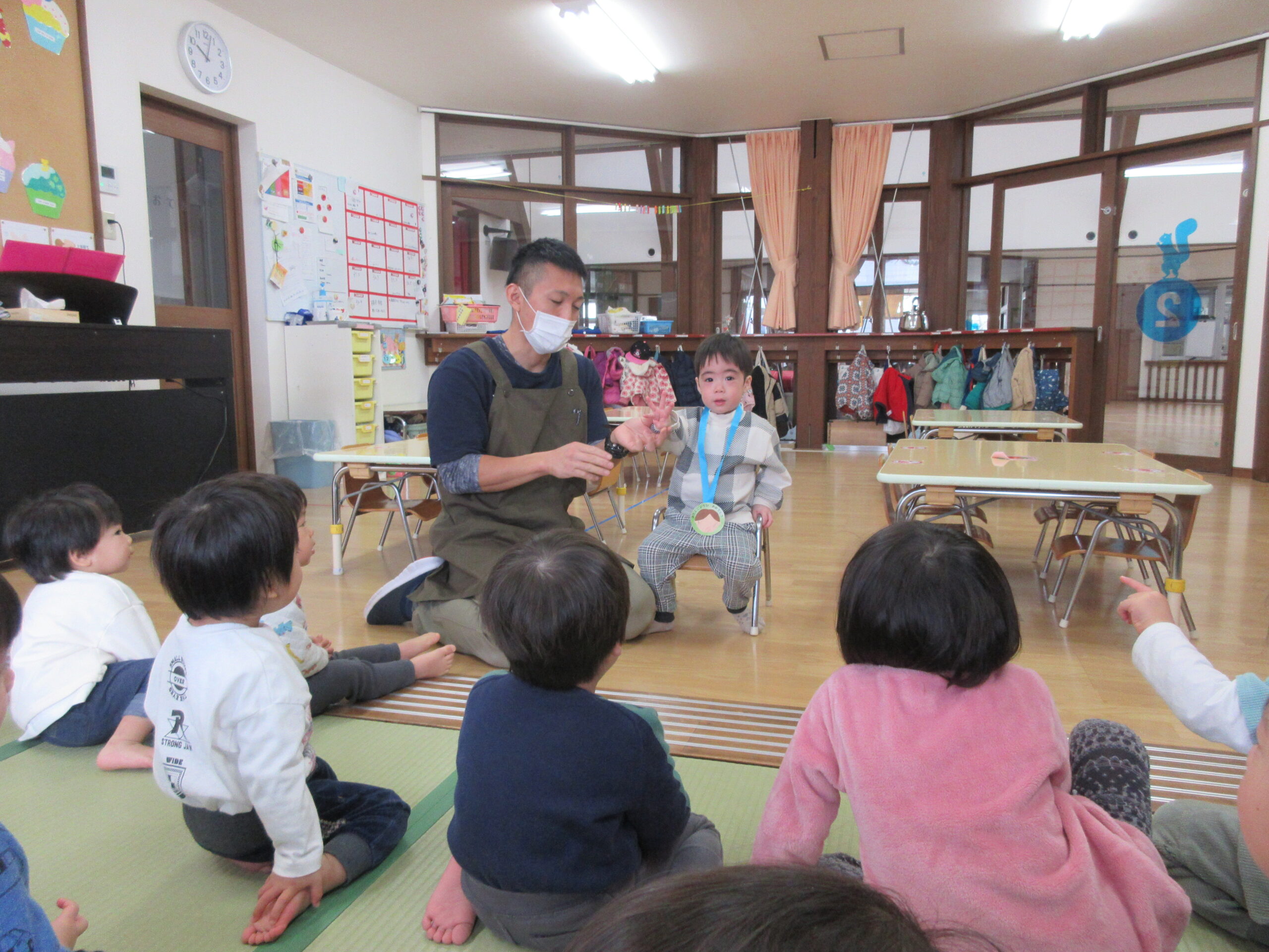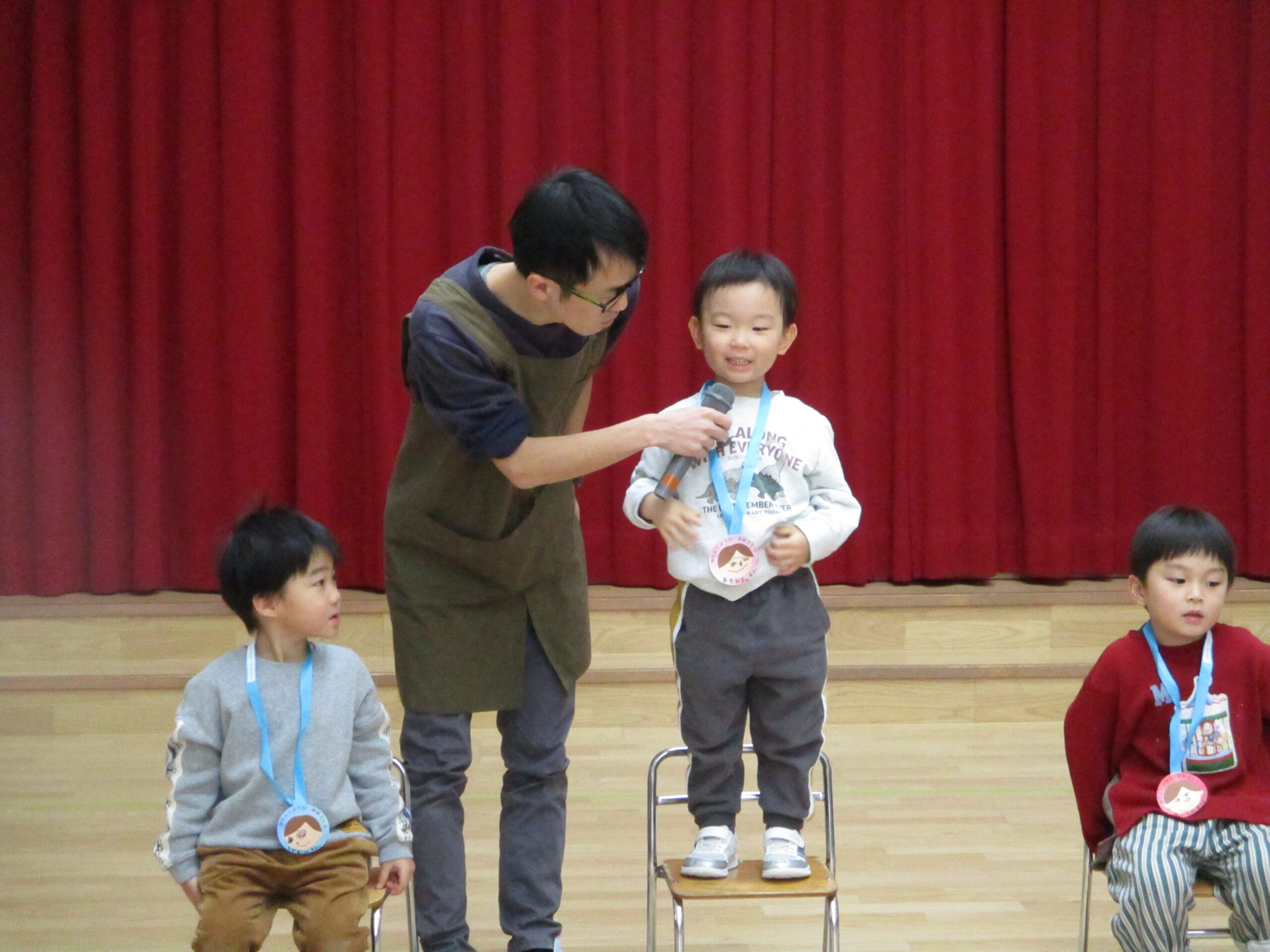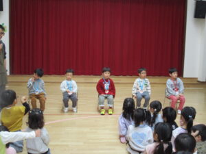 今日は、12月生まれのお誕生会がありました。楽しみに待っていた12月生まれのお友達です。名前も歳も元気に発表できました!
