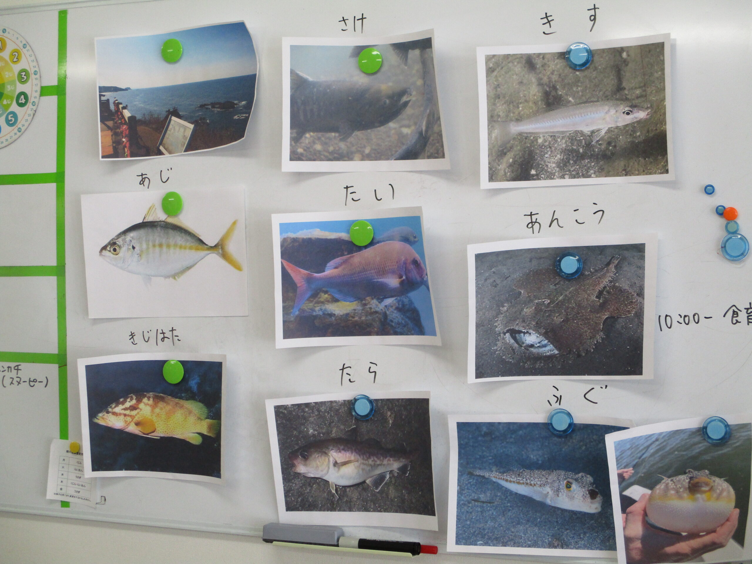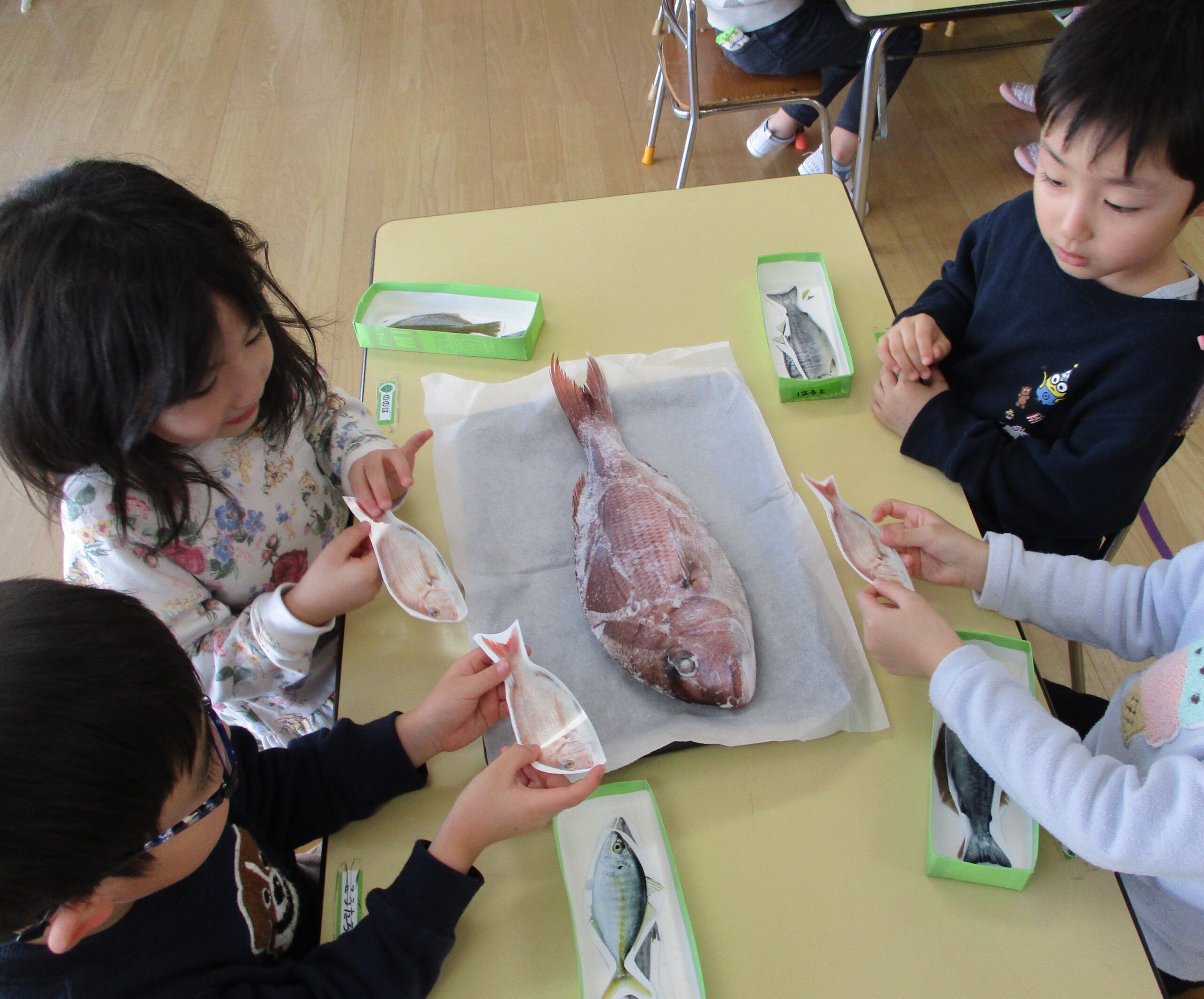 お魚には、良質なたんぱく質がたくさん含まれています。体の健康作りに大切ですね。好き嫌いせず、色んなお魚を食べましょうね!
