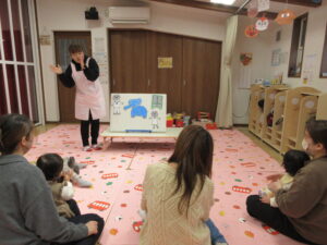 ~お楽しみかい~ 2月3日と言えば節分!今月は、保育園のお友だちと一緒の行事に参加しました。