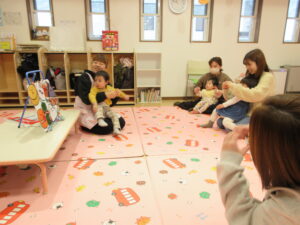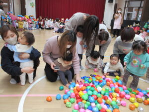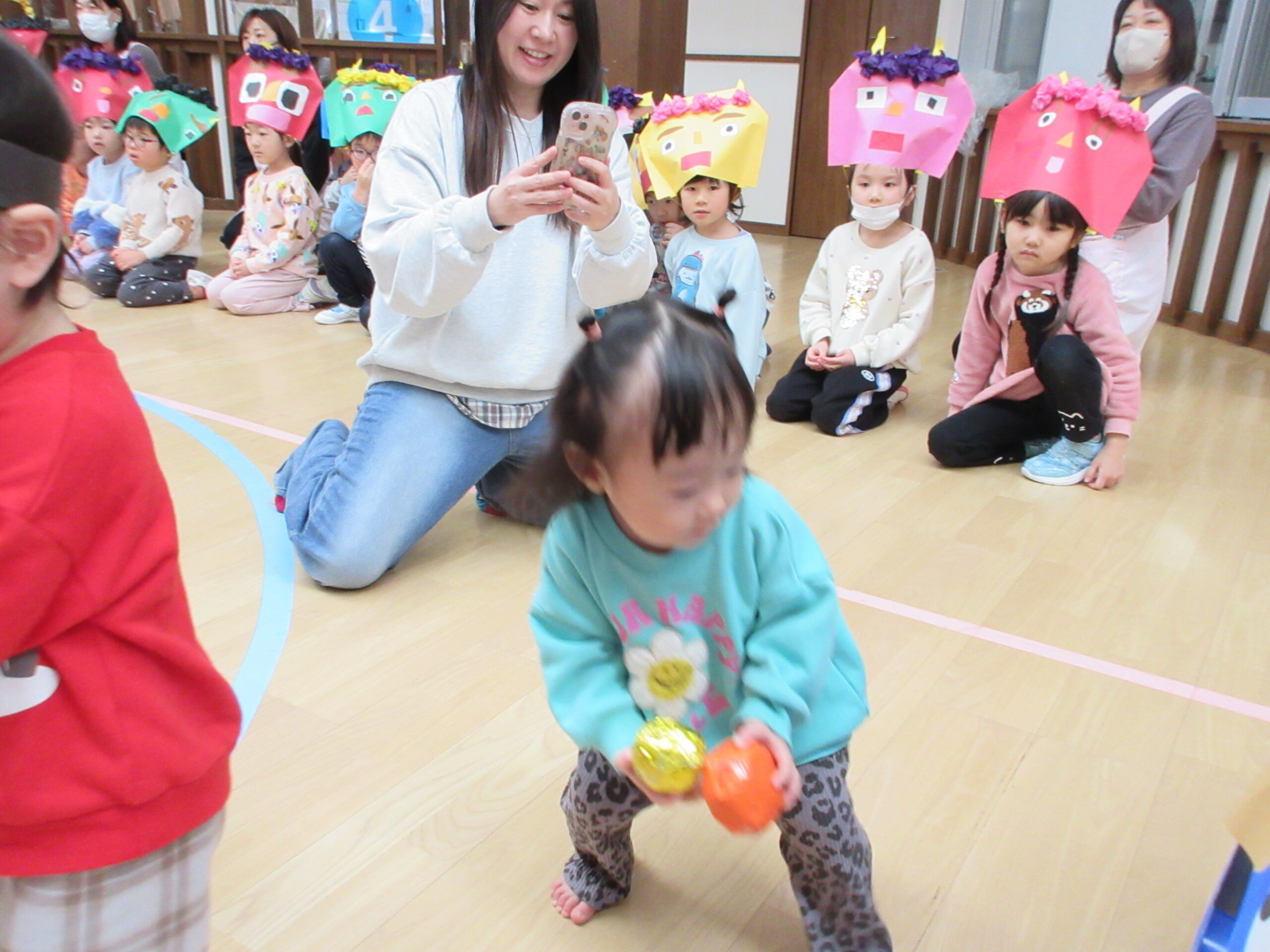 ~お楽しみかい~ 2月3日と言えば節分!今月は、保育園のお友だちと一緒の行事に参加しました。