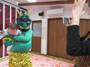 ♪鬼のパンツの歌をうたったり、ゲームに参加したりして楽しく遊んでいたら・・・さくらんぼルームにも鬼がやってきました!!
