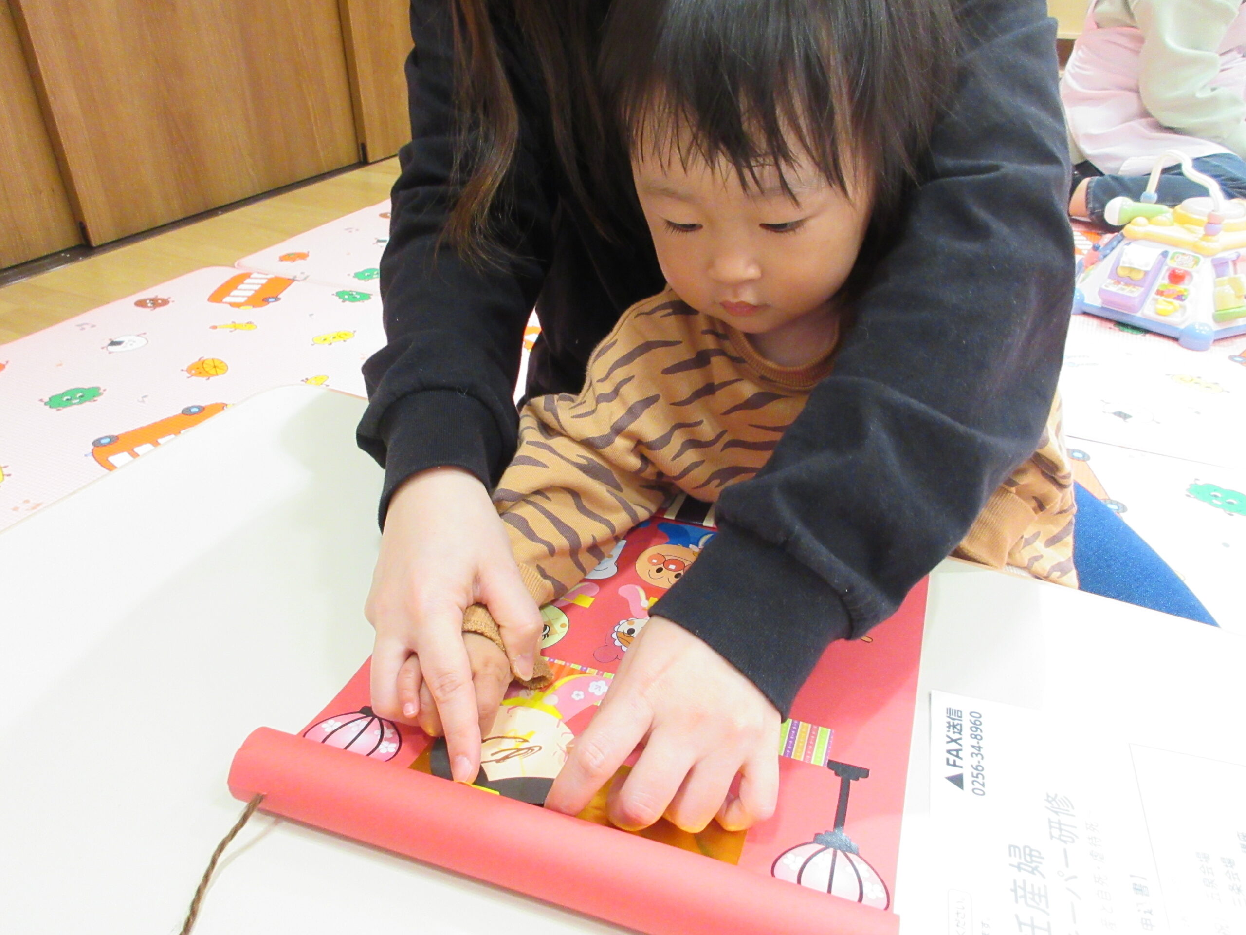 「ねこのおいしゃさん」のパネルシアターは、曲に合わせてお友だちもママも、みーんなで「ニャー」と一緒に気合を入れてくれました。