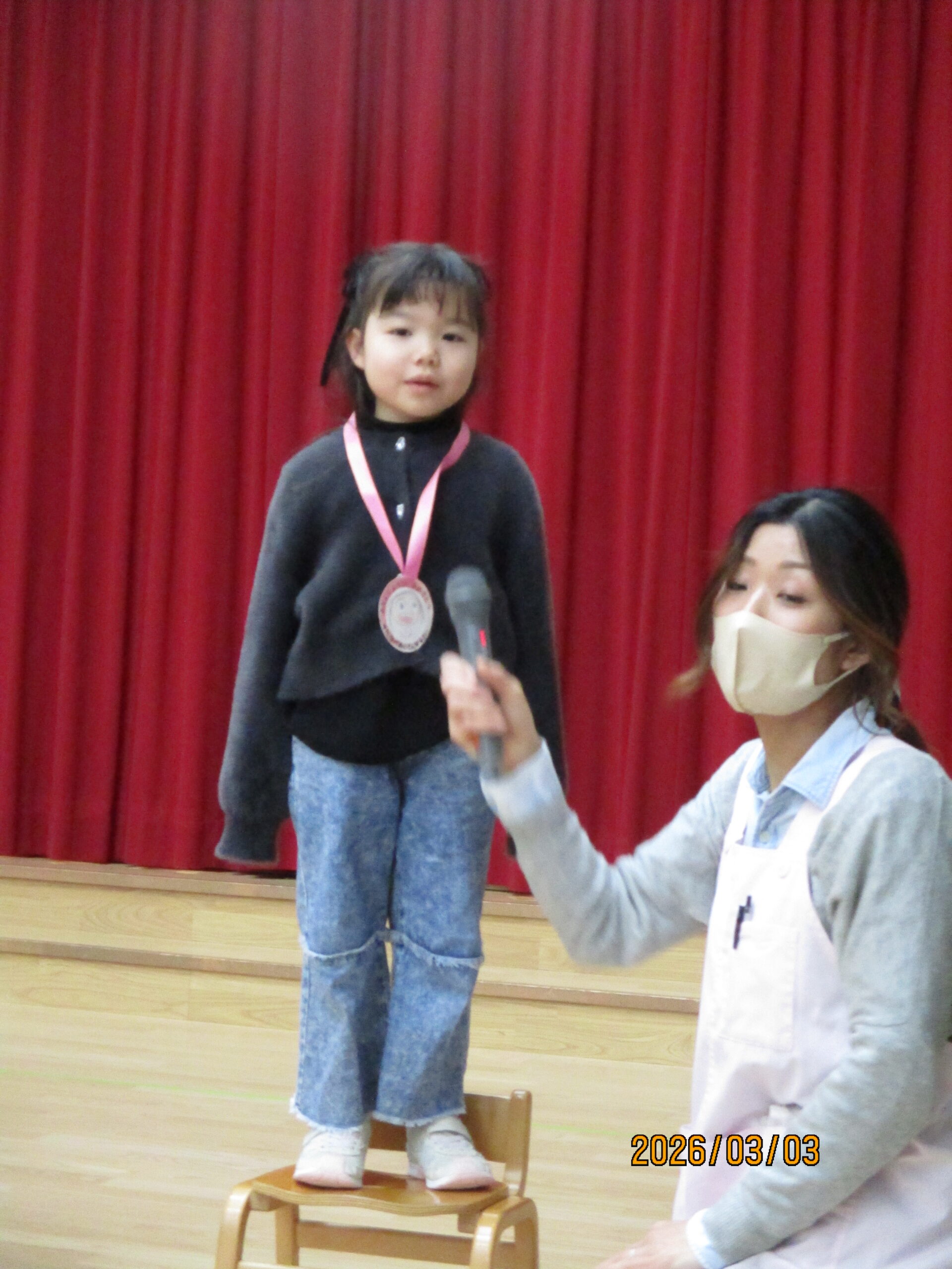 今日は、3月生まれのお誕生会がありました。🎊今年度、最後のお誕生会。お名前を言ったり、お友達からの質問に元気に答えていました!