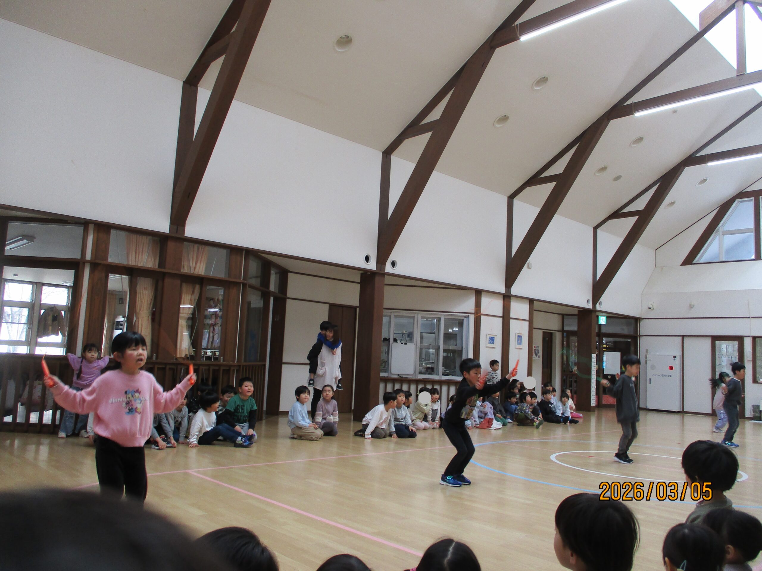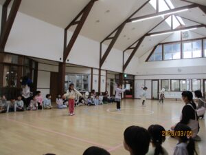 今日は、その成果を発表しました。小さいクラスのお友達も応援しに来てくれましたよ。