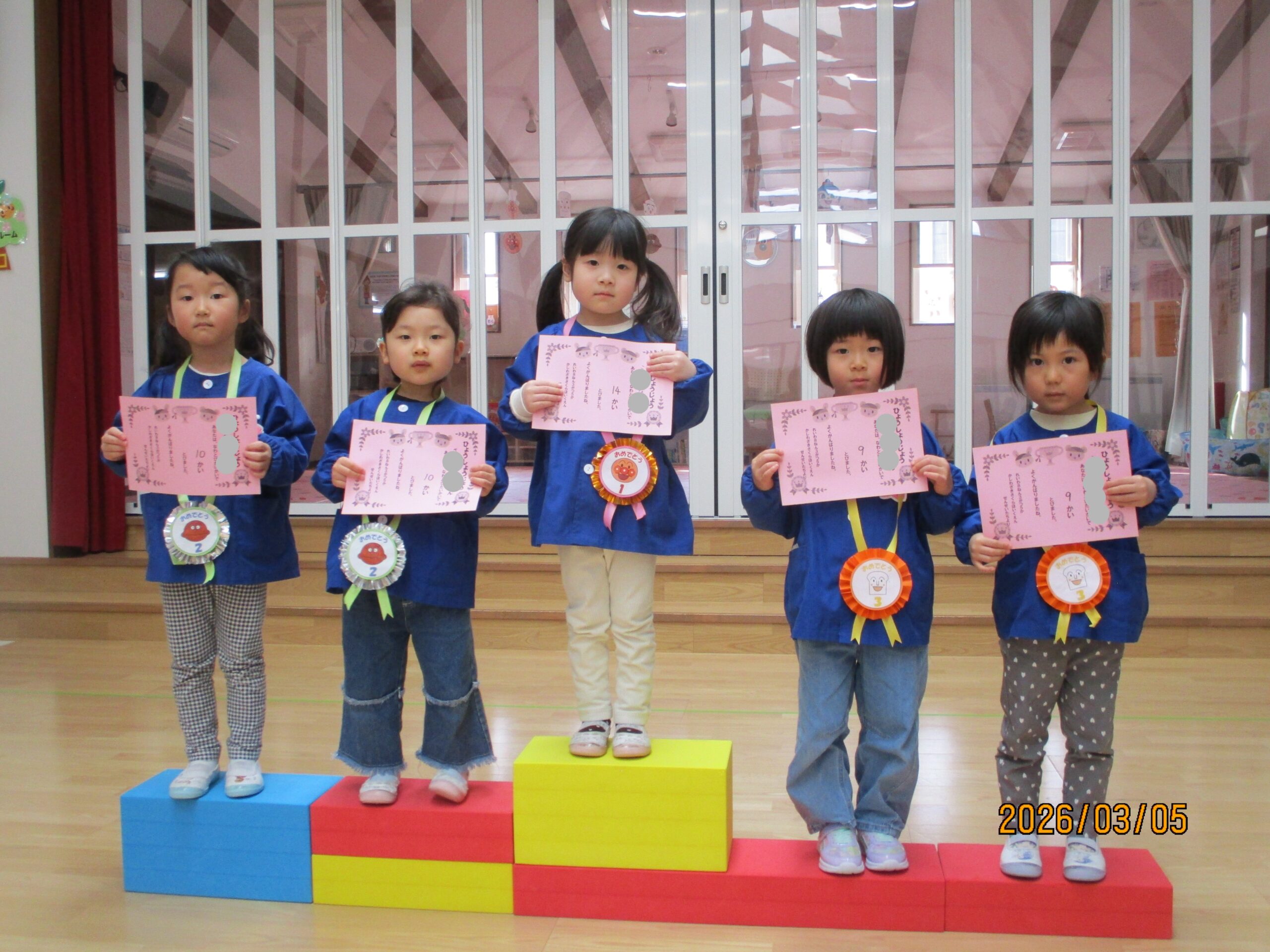 🌟帰りの時間に表彰式をしました🌟それぞれ、クラスから沢山跳べた3名を紹介しました。