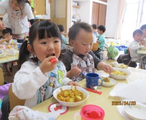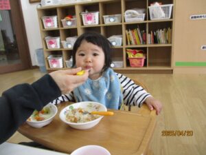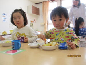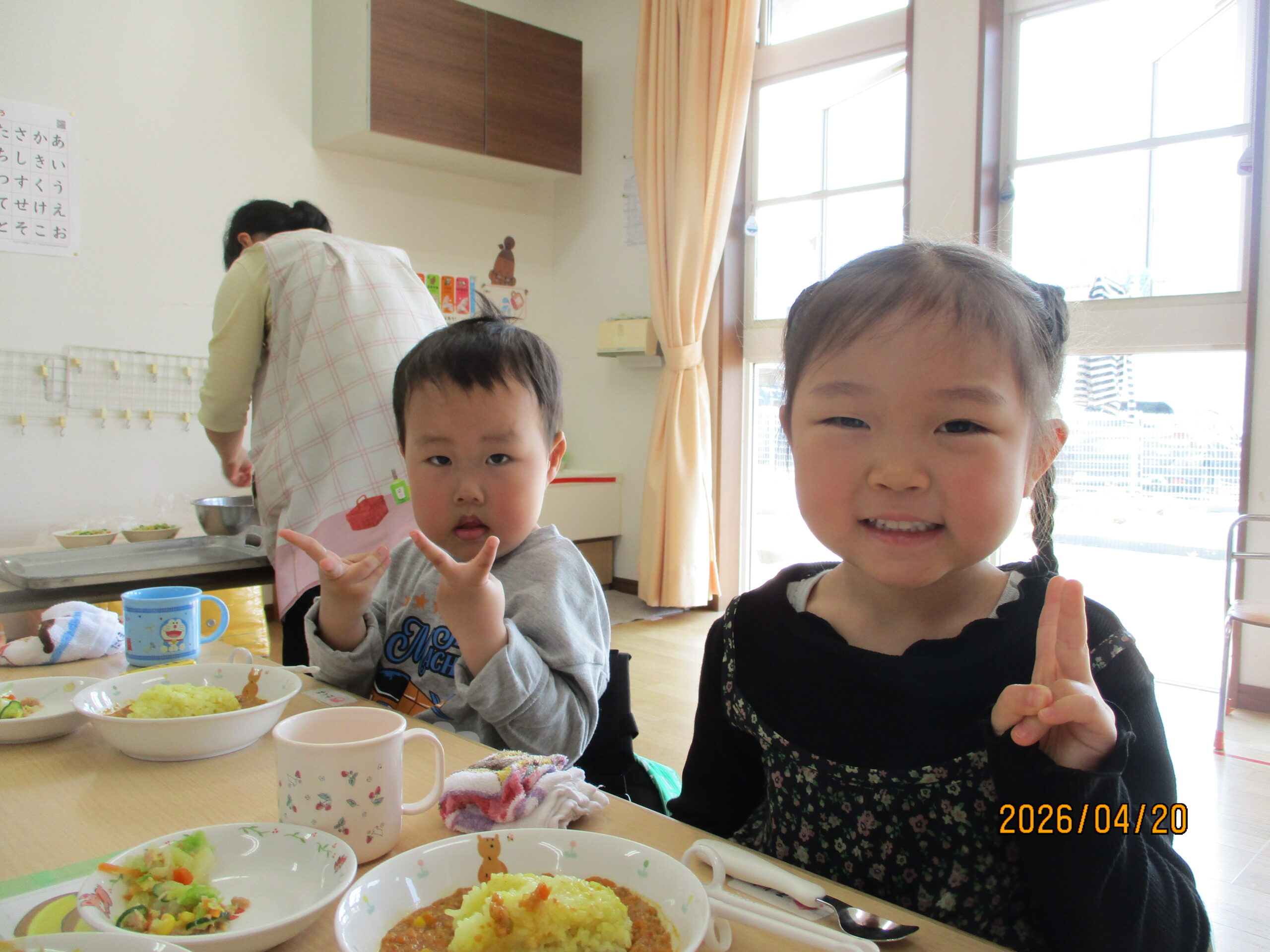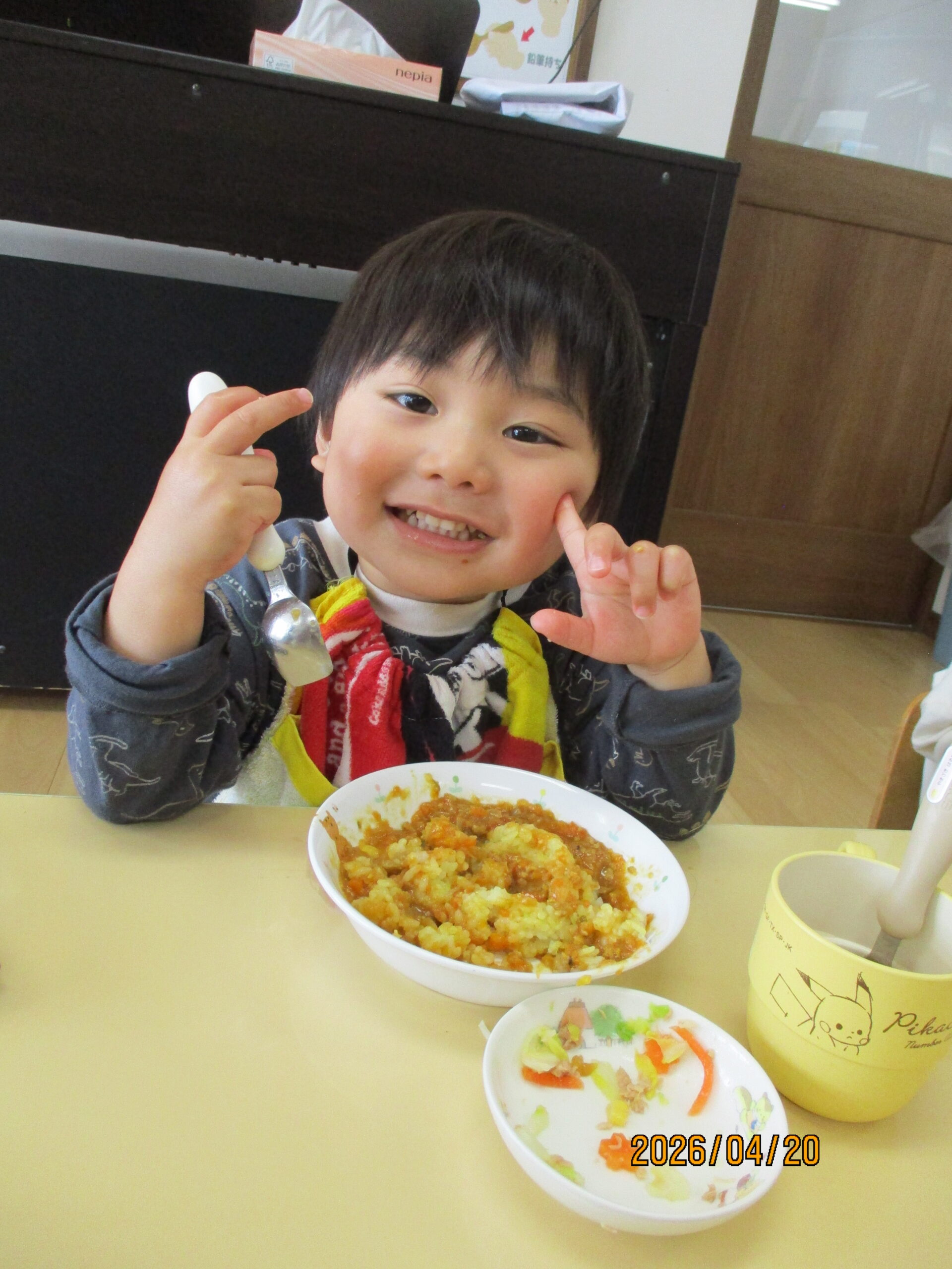 新入園児のお友だちも保育園の給食に慣れてきました。美味しかったよ!