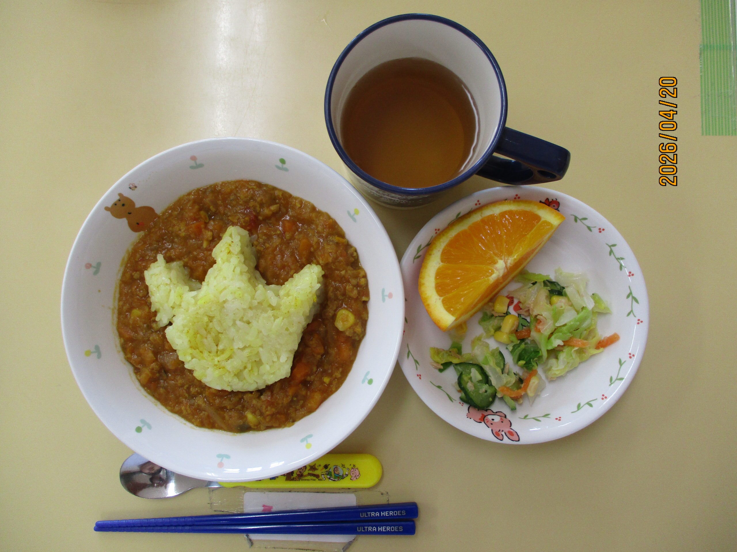 給食は、「ドライカレー・ツナサラダ・オレンジ」でした。